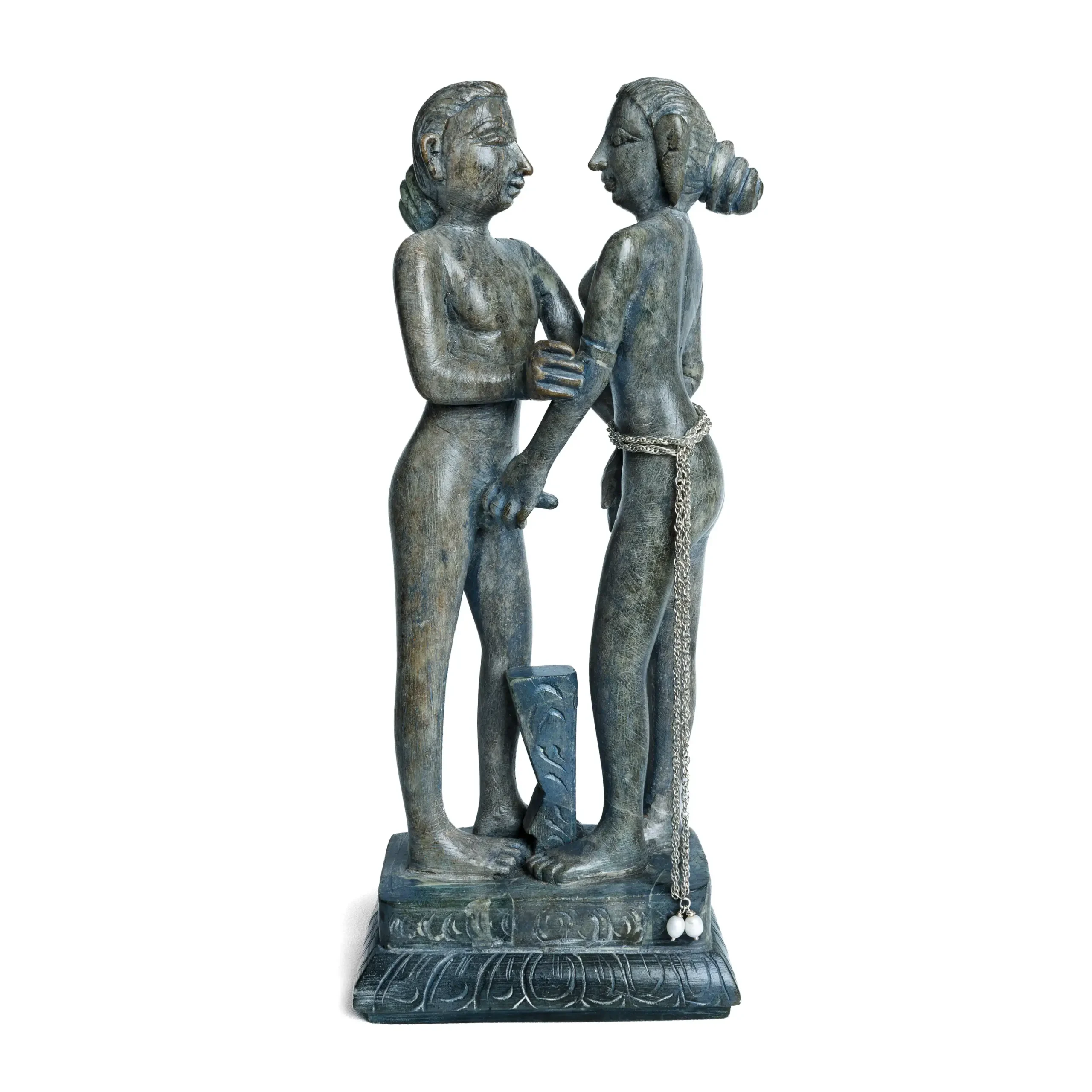 Explore the forbidden ecstasy with Sin II, a mesmerising sculpture crafted from serpentine stone and embellished with captivating jewellery. The interplay of stone and jewelry enhance its luxurious appeal. Its striking design tells a unique story, inviting intrigue and admiration.
